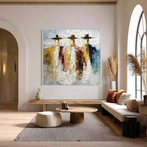 Large Abstract Cowboy Painting, Textured Western Wall Art, Impasto Canvas Art,Modern Living Room Decor